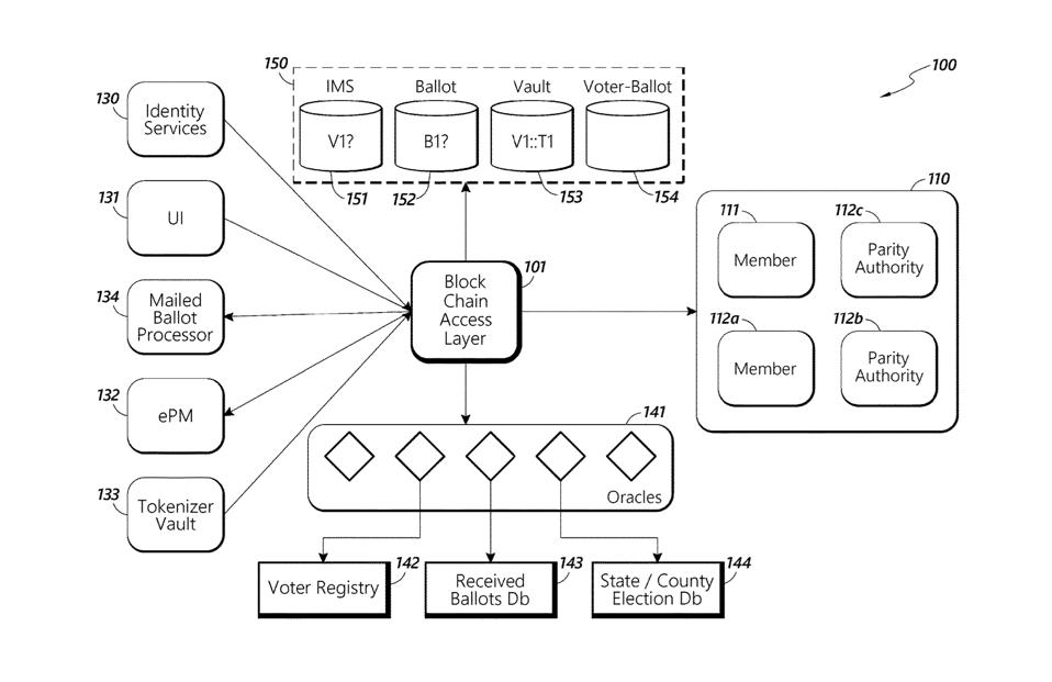 “As news of Trump trying to shut down the United States Postal Service (USPS) and stall mail-in voting captures the headlines, the U.S. Patent and Trademark Office today made public a patent application from the USPS titled ‘Secure Voting System’ that describes using blockchain technology to secure mail-in voting. The application is reported as filed on February 7, 2020, and the invention is described as, “A voting system that can use the security of blockchain and the mail to provide a reliable voting system. A registered voter receives a computer readable code in the mail and confirms identity and confirms correct ballot information in an election. The system separates voter identification and votes to ensure vote anonymity, and stores votes on a distributed ledger in a blockchain.”