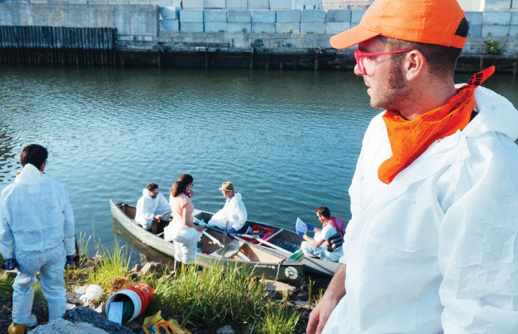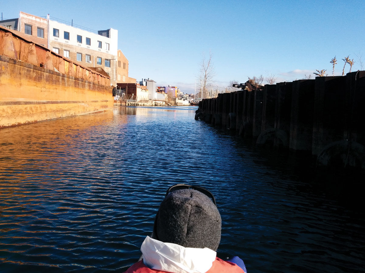 in Brooklyn, NY, aboard a canoe. Credit: Dave Rife”