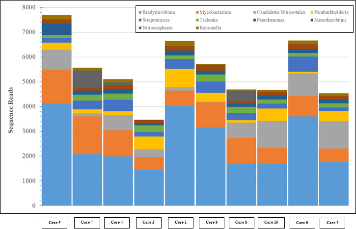 The Ely Brook microbiome that Giddings pieced together revealed a community of acid-tolerant bacteria, including Proteobacteria and Actinobacteria commonly found in metal-rich environments (PLOS One 2020, DOI: 10.1371/journal.pone.0237599). The team also identified bacteria that oxidize iron and sulfur, which are in high concentrations in the brook, as well as others, like Bradyrhizobium species, which produce nutrients for plants by reducing nitrogen gas to usable ammonia. Other researchers have found Bradyrhizobium bacteria at a former nuclear weapons production facility, the Savannah River Superfund site.