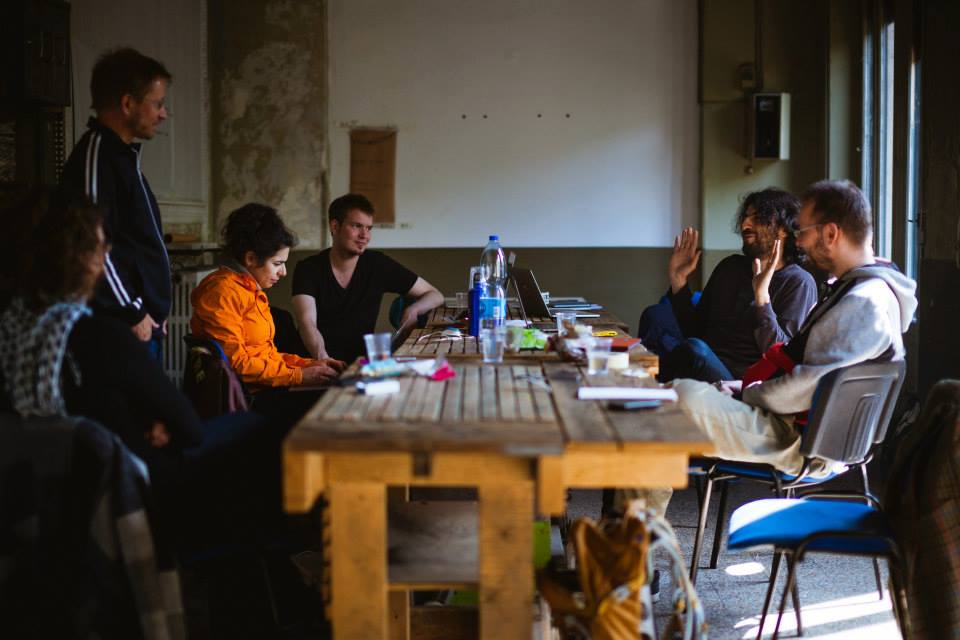 Ana describes Robin Hood as ‘artivism’ – a mix of arts and activism. Indeed, the meetup feels like a synthesis between an intellectual salon, a practical hackathon and a political campaign meeting. On the whiteboard is a scrawled web of lines drawn in marker pen, sketches of company structures and money flows. The team is attempting to explain the outlines of the Robin Hood fund to local Milan activists who are curious about how it works.