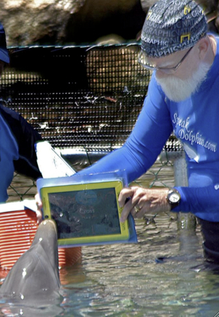 Research scientist Jack Kassewitz is using iPads with custom-developed software to help facilitate two-way communication between humans and dolphins. Kassewitz has worked for years studying the behavior and communication patterns of dolphins. Numerous studies on dolphin language show signs of advanced intelligence, and it is believed that the high-frequency sounds dolphins make underwater are capable of communicating information that is holographic in nature. Since humans don’t communicate natively with holograms, Kassewitz is currently working on a project to build a symbolic language that dolphins and humans can use to communicate with one another. Kassewitz searched for nearly two years to find a touchscreen device that dolphins could reliably activate with their rostrum (or beak), while still being powerful enough to record or play back the high frequency sounds associated with dolphin language and durable enough to work in underwater environments. He had originally settled on the Panasonic Toughbook, but recently began evaluating the iPad as an alternative.